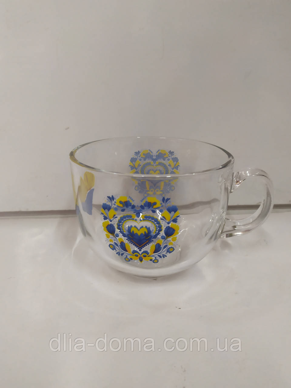 Чашка стеклянная с рисунком " Украина " 500мл О 11см Н 8.5см 7376