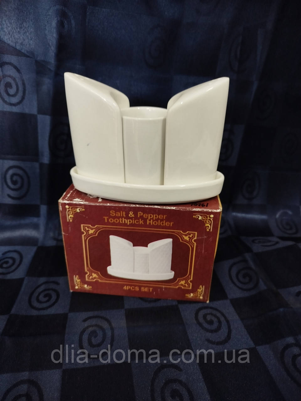 Набор для специй 3-х пред. керамический белый / соль-перец-зубочистки / 12,5 см Н 9 см 19201